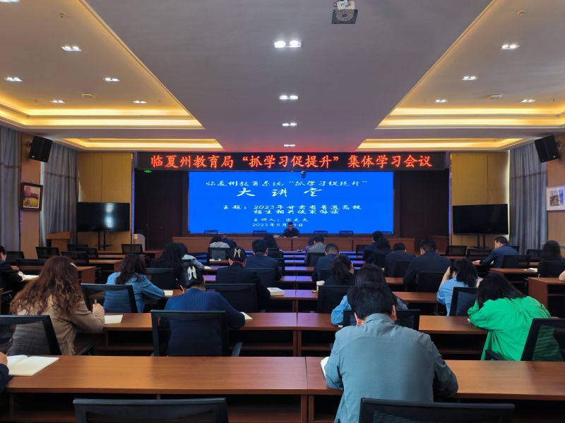 5月29日,临夏州教育局举办了第九期“抓学习促提升”学习大讲堂。会议由临夏州教育局党组成员、副局长吕福昌主持,局机关全体干部职工参加。
