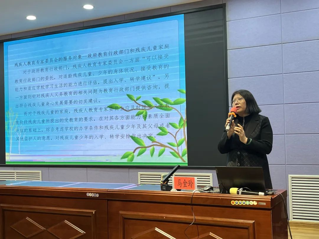 马金玲教研员强调了本次培训的目的,指出今后送教上门工作需要努力的方向,希望参训学员通过本次培训,提升理念,共研发展思路,推动送教上门工作高质量发展,实现教育公平,让残疾儿童更好地融入社会。