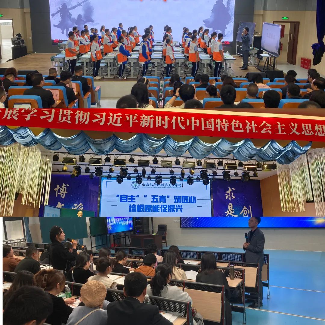 紧接着参训教师共同聆听了贺张老师的历史示范课。贺老师以曹操作为本课的核心人物,结合曹操的大量诗词,通过诗词让学生感悟理解曹操当时的心情以及他的选择,过渡自然,顺理成章,新颖的教学设计,丰富的图文资料,完备的教学环节,展现出贺老师深厚的教学功底,也调动了学生的积极性,有效培养了学生的核心素养。下午,成都教科院附属龙泉学校校长唐海鹰作了《“自主”“五育”筑匠心,培根赋能促振兴》的专题讲座,对学校管理、学校规划以及教育理念为参训教师做了介绍。黄国越老师为下午参训教师带来了一堂精彩的示范课。黄老师引导学生化身导游,带领大家领略祖国的大好河山和深厚的历史文化,课富有活力,环节设计精彩。赵明辉老师的课堂在两位音乐老师的优美歌唱声中完美地融合了音乐与道德与法治,在一首首歌曲中,向学生展示了改革开放不同时期的特色,这种新的表现形式让参训教师叹为观止。