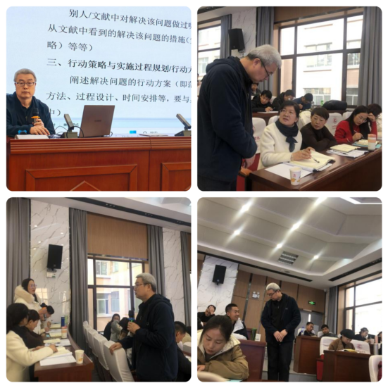 临终日而思,不如须臾之学;跤而望矣,不如登高博见。站在巨人的肩膀上,我们可以看得更远,聆听专家的讲座我们可以明确方向。2023年11月29日上午,由西北师范大学教授吕世虎教授给我们带来了以《教学改进行动研究的选题与规划》为主题的讲座。在吕教授的带领下,100名教师携手同行,互学共进。吕教授围绕本次讲座主题,强调行动研究,为了能让大家更好地理解“行动研究”,便用问答的方式和大家讨论给学生布置作业的目标是什么?虽然目标很清晰,但是各位老师所采取的措施是否有效呢?随之,各位老师结合自己的教学实际和教学困惑积极思考并与吕教授进行了有效的交流与互动。吕教授还重点阐述采取什么措施,用什么方法(工具)评估实施过程及其效果,根据评估如何做进一步改进等问题,并且结合两个教学改进行动研究方案,带领大家在反思中发现问题,寻找突破路径。
