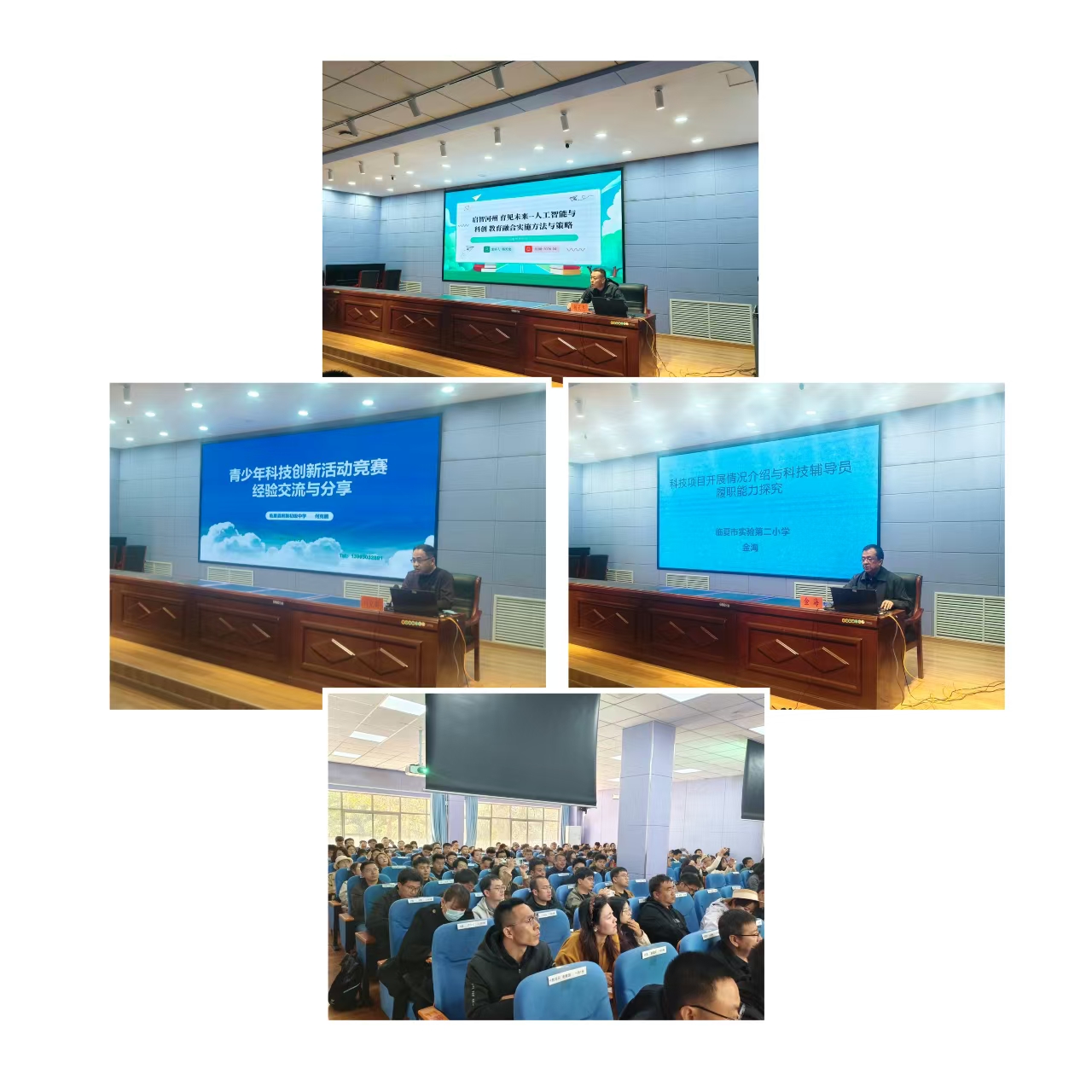 本次培训坚持“理论筑基、实操强能、本土适配”原则,特邀省州内外权威专家授课,聚焦人工智能融合、科创体系构建、竞赛实务指导三大核心板块。中国青少年高级科技辅导员、国家二级青少年机器人竞赛裁判杨天龙老师围绕《智启河州 育见未来——人工智能与科创教育融合实施方法》作专题讲座,立足我州实际,系统拆解人工智能赋能课堂教学路径,从理念、案例到方法、难点,为科创教育落地实践提供清晰指引。全国优秀科技辅导员金海老师结合实践与裁判经验,分享科创教育体系建设与科普工作经验,聚焦推动全州科创教育均衡发展,助力惠及每位学生。甘肃省信息化引领导师何克鹏老师以《青少年科技创新活动竞赛经验交流与分享》为题,细致讲解项目设计、学生指导、备赛重难点等实用内容,干货满满、针对性极强,为参训教师提升赛事指导能力提供了有力支撑。