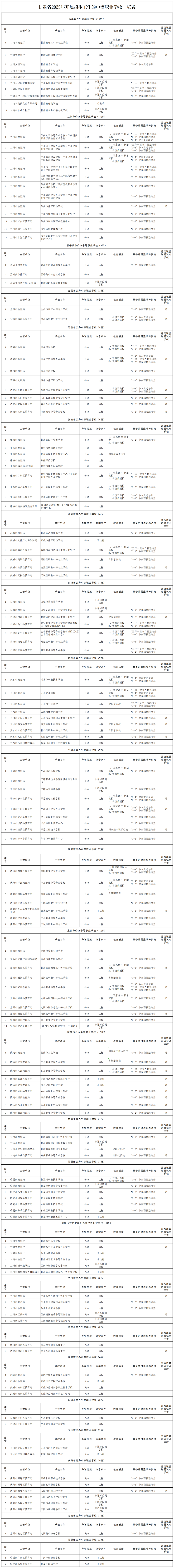 附件:甘肃省2025年开展招生工作的中等职业学校一览表