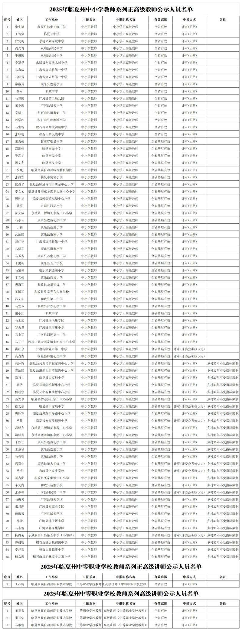 3.2025年临夏州中等职业学校教师系列高级讲师公示人员名单