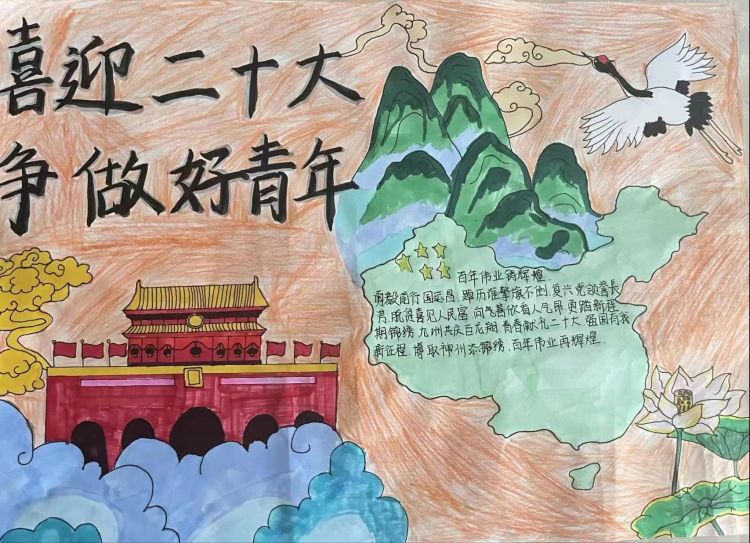 为了全面贯彻落实教育减负提质相关工作要求,规范学校教学管理,促进学生的全面发展,健康成长,给学生搭建一个展示自我的平台,广河县城东中学举办了以“学习二十大,争做好少年”为主题的手抄报绘画活动, 旨在弘扬爱国主义精神,激发青少年的爱国之志,同时培养学生的动手能力。