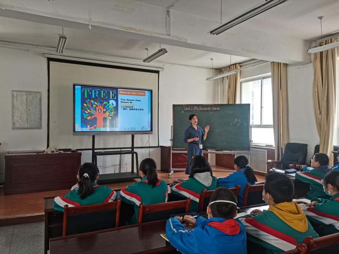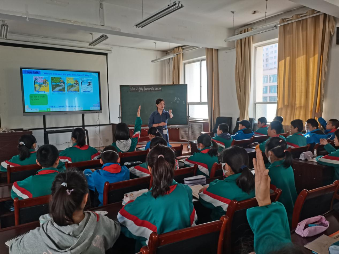 王瑞芳和王庆蓉两位师执教的是五年级Unit2 My favourite season PartA Let's learn,设计新颖,充分调动了孩子们的积极性和对旧知的巩固。在整个教学过程中,教师都非常注重情境的创设,操练单词形式多样,与孩子们互动颇多,通过"The magic train"呈现出了多彩的四季。课堂上孩子们充分发挥了自己的想象和思维能力,使学生在融洽的课堂氛围中学习,达到了很好的教学效果。