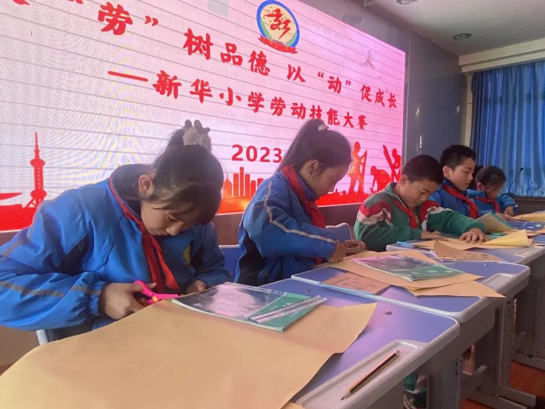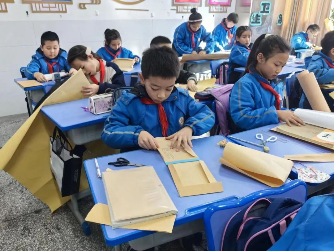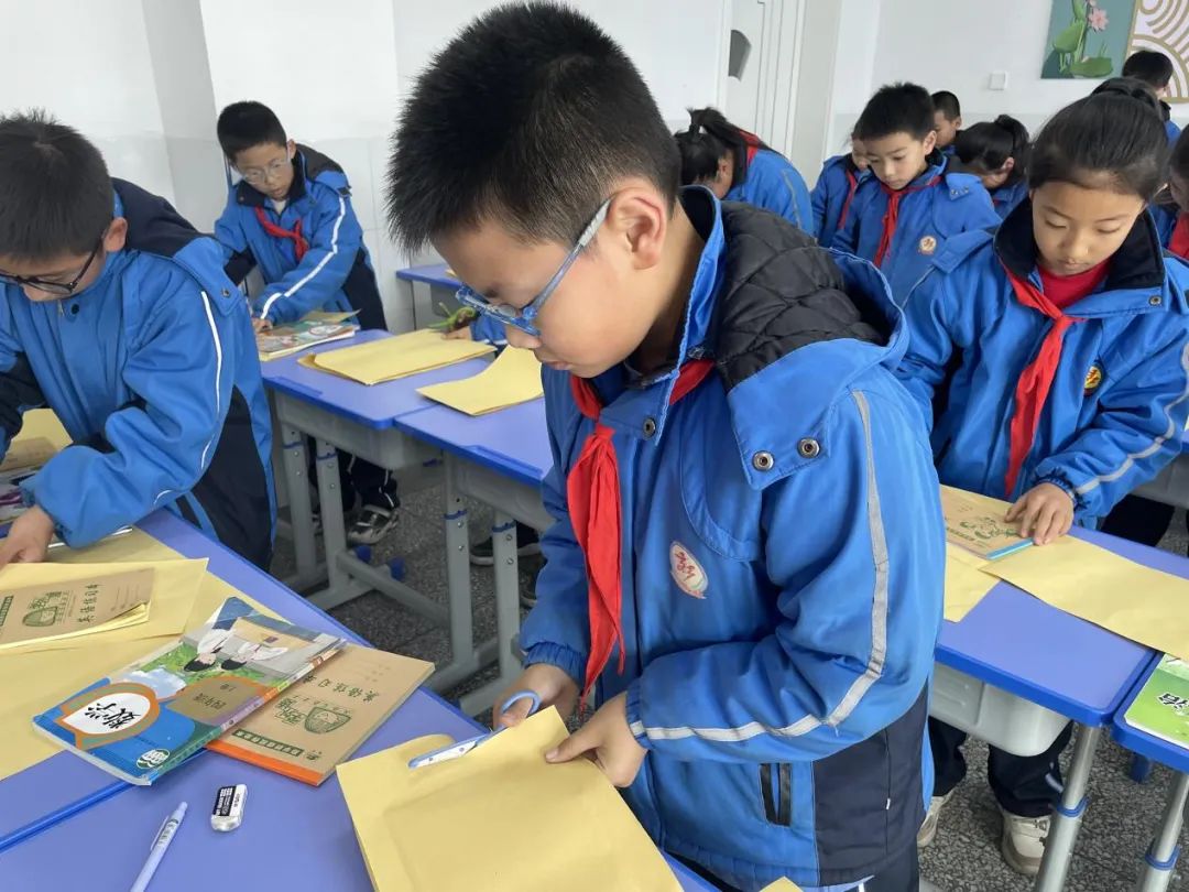 【四年级】我的课本我做主包书皮虽然只是一项简单的劳动,但聚沙成塔,必能以小见大。通过比赛提升学生的动手、动脑和生活实践能力,树立“自己的事情自己做”的劳动意识和“我能解决实际问题”的劳动体验。