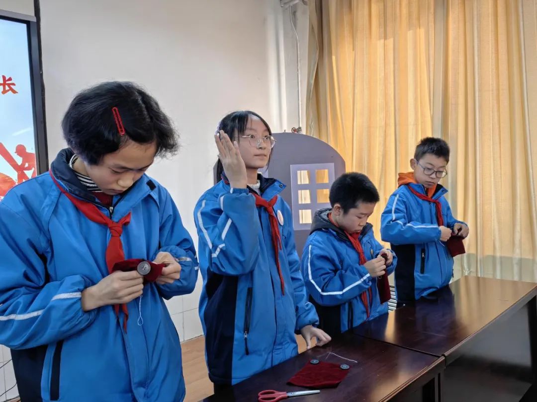 【六年级】钉纽扣比赛钉纽扣对于小学生是个不小的挑战,可六年级同学从穿针引线、到纽扣缝制、再到打结收线,稚嫩的小手拿起针线有模有样。他们不仅熟练的将纽扣牢牢地“钉”在了布上,而且“钉”的速度不一般,看来选手们赛前可是下了一番功夫呢!