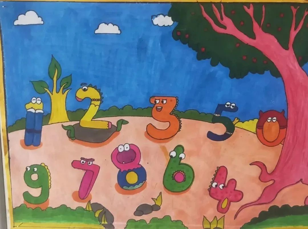 一年级数字创意画比赛,让数字插上智慧的翅膀。一年级的小朋友们用丰富的想象,以绘画的方式把数字王国里的小伙伴变成了一幅幅生动又好玩的数学画。他们发挥着自己的想象力、创造力,把单调的“0 到 9”十个数字融入到图画中,设计了许多色彩艳丽,内容丰富的“创意数字画”。