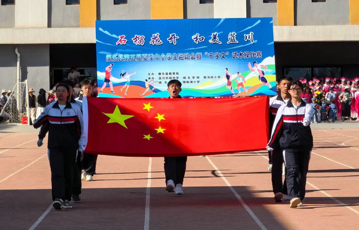 5月11日,康乐县第五届中小学生夏季运动会暨“千字文”武术操比赛在蓝川初中圆满落幕。本届运动会以“石榴花开 和美蓝川”为主题,全县中小学34支代表队、3500名运动员参与,共设30人31足跑、田径、足球、千字文武术操4个大项,实心球、立定跳远、跳绳等13个小项,在蓝川初中设主赛场,城北学校、新治街小学、城东小学、胭脂湖小学设分赛场,历时5天举行,共同呈现了一场激情与拼搏的青春盛会。
