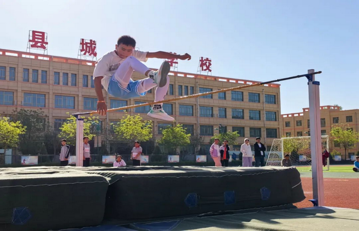 田径赛事于城北学校分赛场火热进行,百米跑道上疾影如箭,跳远沙坑旁身姿似燕,跳高横杆前腾跃若鹰。场边加油声此起彼伏,少年们以速度与力量书写青春篇章。