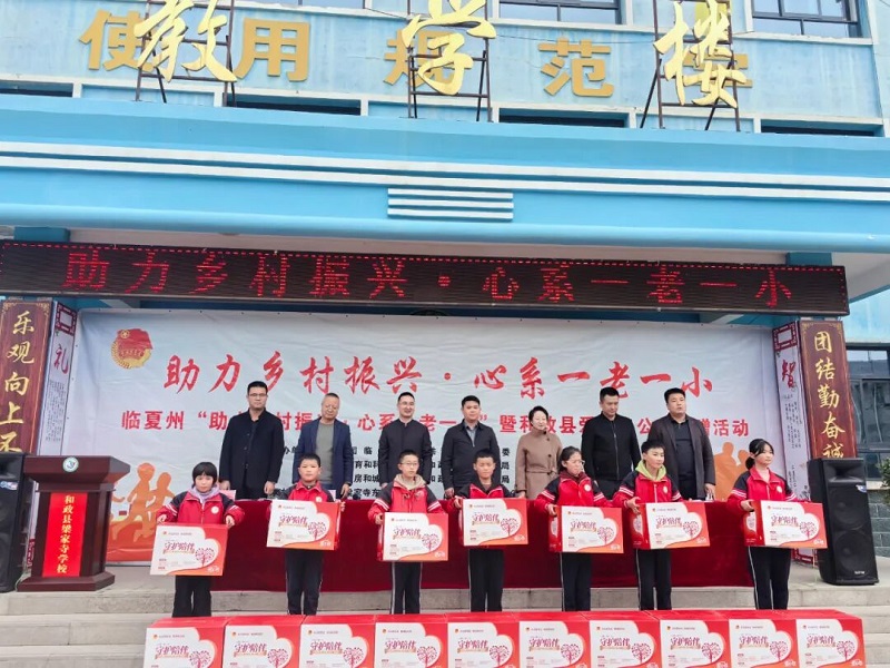 为深入贯彻落实习近平总书记关于关心关爱“一老一小”群体的重要指示精神,积极响应省委、省政府“结对帮扶·爱心甘肃”工程号召,11月12日下午,“助力乡村振兴·心系一老一小”爱心包公益捐赠活动在和政县梁家寺东乡族学校顺利举行。此次活动是州县团委携手甘肃传爱慈善基金会,联合教育、工信、住建、农业农村、工商联、残联等多家部门单位共同发起实施的公益项目,旨在为农村“一老一小”困难群体提供爱心帮助,助力乡村振兴。团州委副书记马占彪,县委常委、副县长马颖,甘肃传爱慈善基金会理事长卢永锋出席活动。