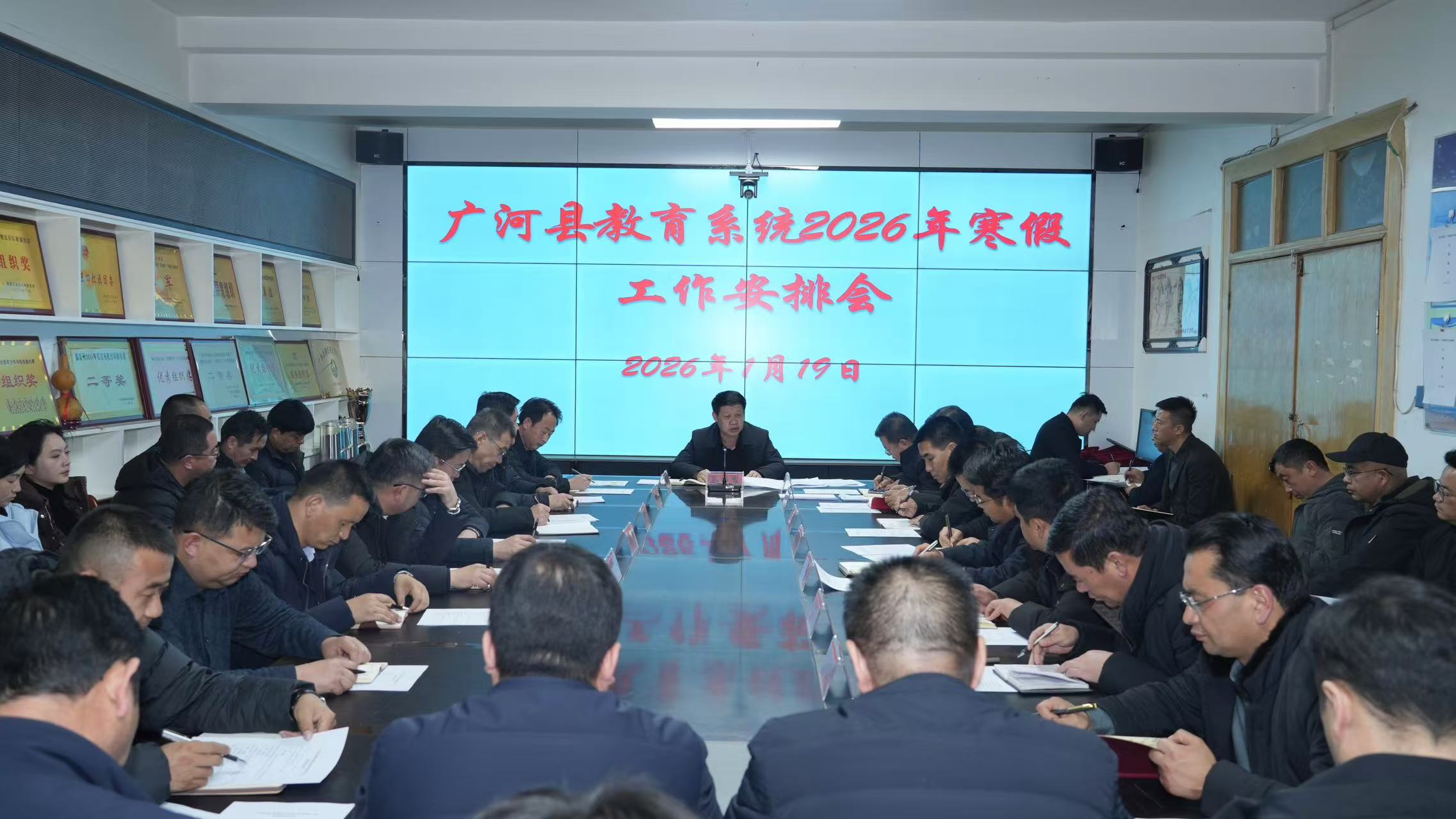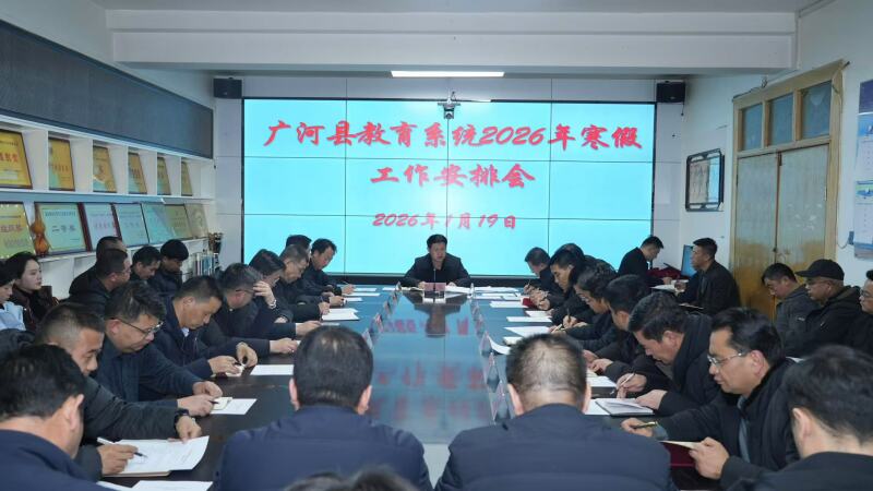 1月19日下午,广河县教育系统2026年寒假工作安排会议召开。县教育局党组书记、局长马应发主持会议,局班子成员、督查小组成员,各学段校(园)长、校外培训机构负责人等参会。
